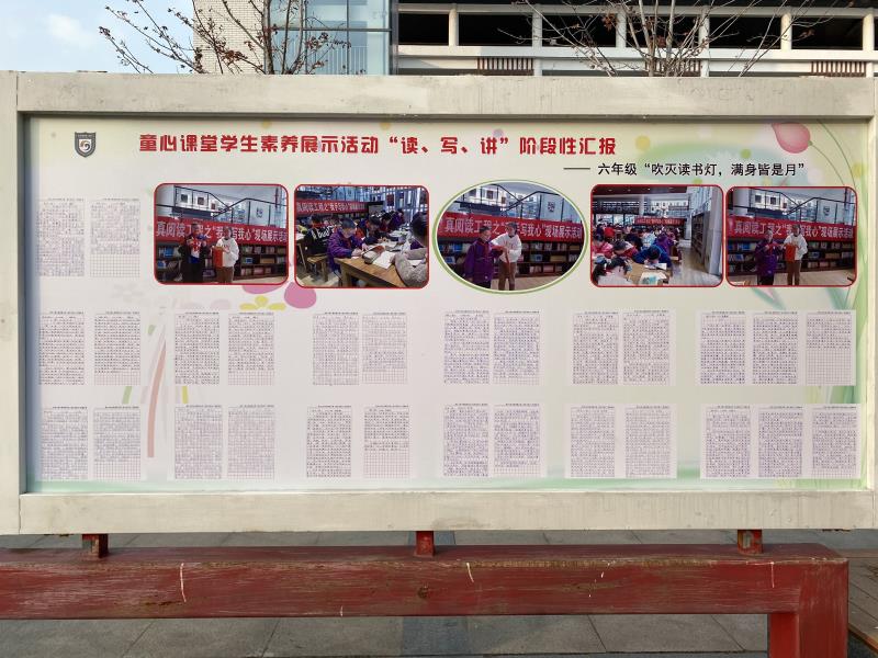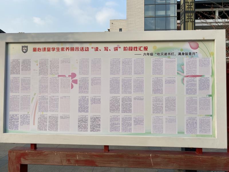 本次展示活动中,各年级围绕不同的主题展示汇报自己的阅读收获和阅读感受,一年级“小荷才露尖尖角”,硬笔书法作品展示,读写结合展示自己的阅读收获;二年级“我为悦读做书签”,结合本学期课外阅读制作小书签,在动手操作中加深阅读体会;三年级“手写中西文化字”,英语硬笔书法展示,既培养自己热爱中华文化的感情,也开阔自己的眼光和胸怀;四年级“言传千古不变情”,各班围绕课外阅读,开展读书分享沙龙活动;五年级“心有灵犀一点通”,结合本学期课外阅读制作手抄报;六年级“吹灭读书灯,满身皆是月”,学生结合课外阅读现场写读后感。