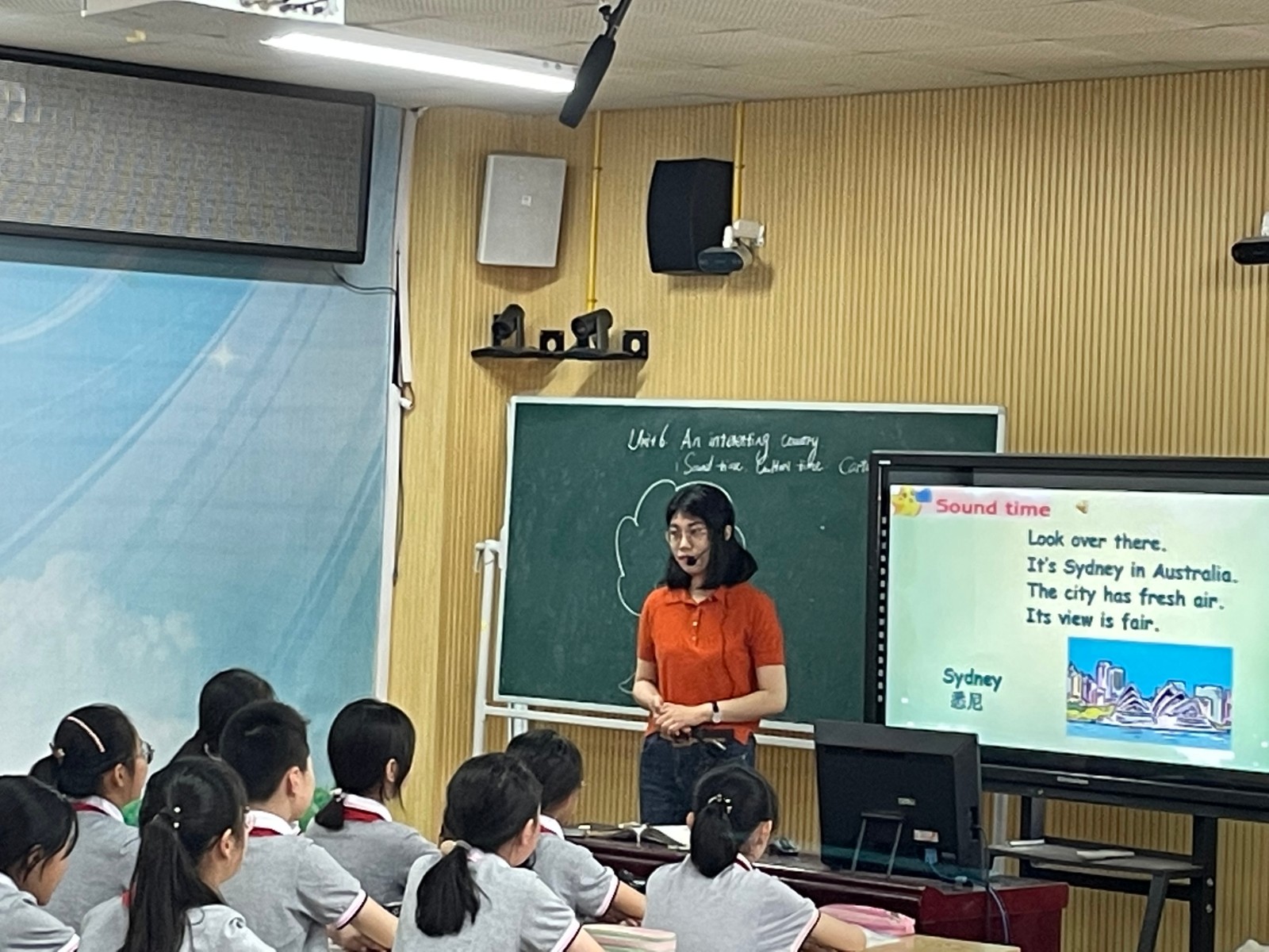 吴敏老师执教六年级《An interesting country》,利用互联网进行视频连线,小小的屏幕连通两地,实现了一位教师两个课堂的创新教学。吴老师采用多媒体技术创设情境,通过视频、图片、阅读等材料调动学生多感官的互动,利用小组合作、表演竞赛等方式让学生参与课堂,既展示了我校学生的风采,又将山东小学学生的课堂积极性调动起来。整堂课层次分明,思路清晰,重点突出,大家共同思考、共同学习、共同成长。