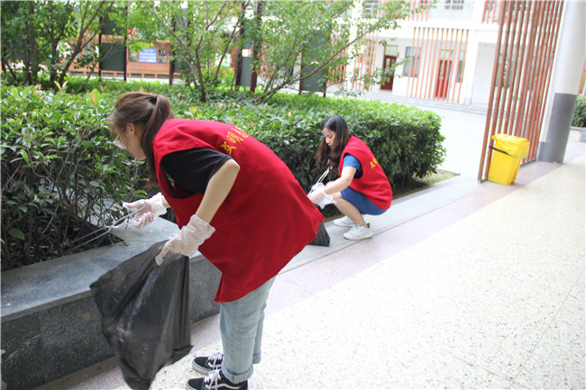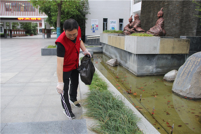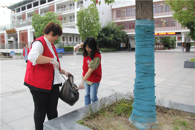 校领导们高度重视校园环境卫生,制定清理方案并带队清理卫生。为确保此次活动保质保量完成,各处室分为11个小组11块区域。从校园门口到校园内部边边角角,无处不是教师们的身影。