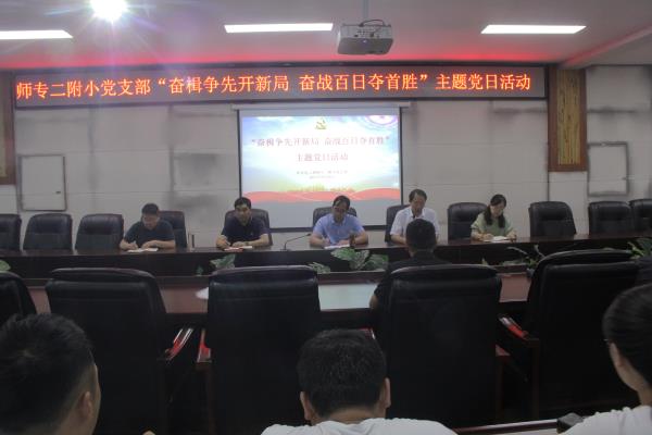 9月24日上午,师专二附小党支部开展“奋楫争先开新局 奋战百日夺首胜”主题党日活动。党支部副书记张继多主持会议,全体党员、预备党员参会。