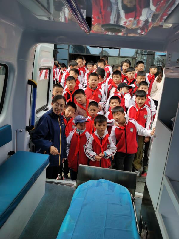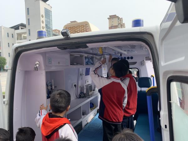 最后,专家人员带领孩子参观救护车,让孩子对急救又多了一些了解。