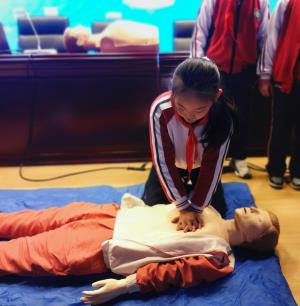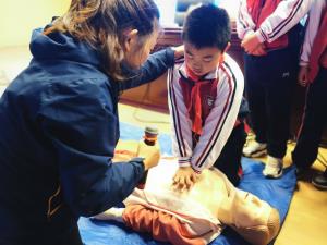 孩子们学习兴趣高昂,都在认真练习心肺复苏急救法。
