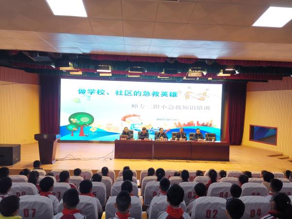 10月19日,师专二附小为贯彻落实国家“双减”政策要求,全面推进小学生素质教育普及急救知识,提高小学生紧急避险意识和急救能力,特邀市急救中心相关专家郭璇书记、徐海主任、周燕玲主任、孙婷医生赴我校开展急救知识培训讲座。