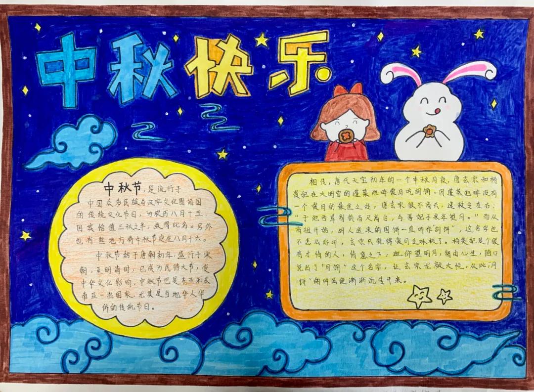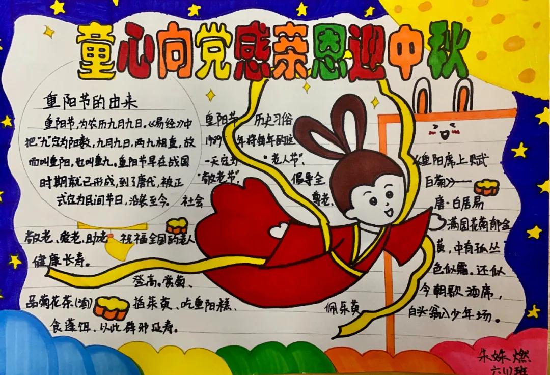 9月19日——21日,开展“月是故乡明,情是亲情浓”主题活动。队员们以手抄报的形式介绍中秋节典故及传统,并与父母长辈相约中秋赏月,共聚团圆。