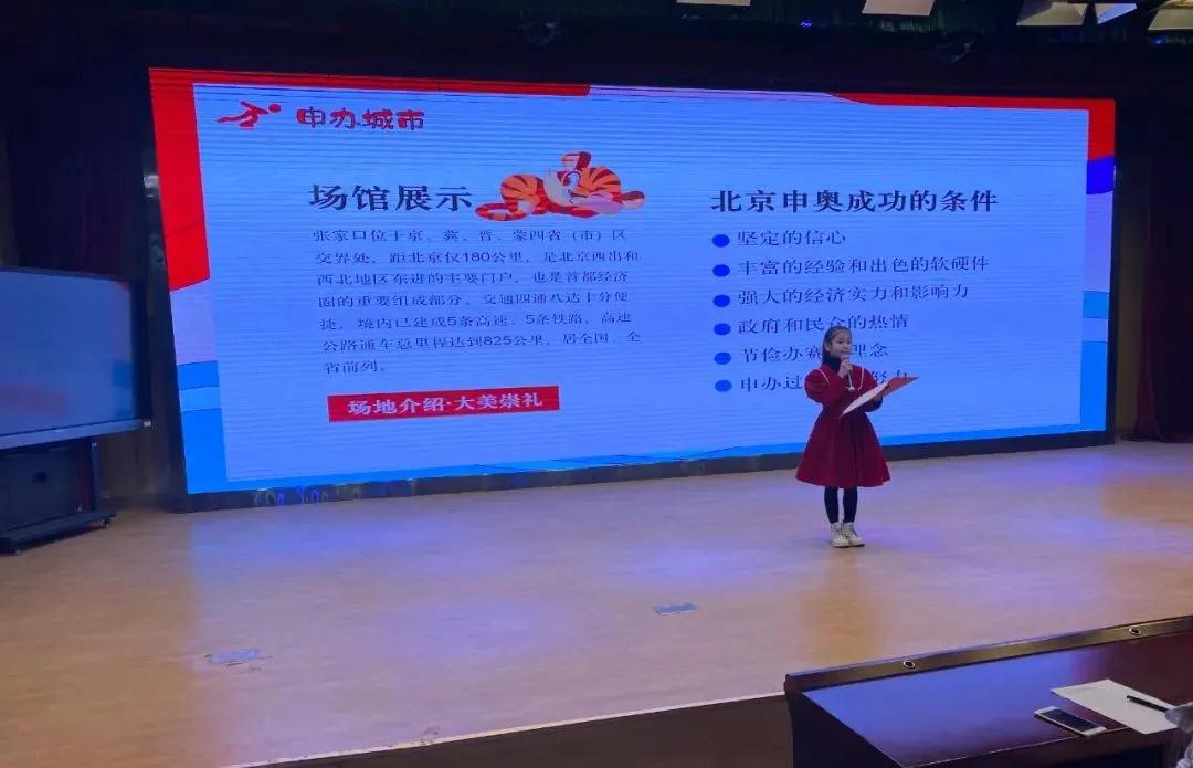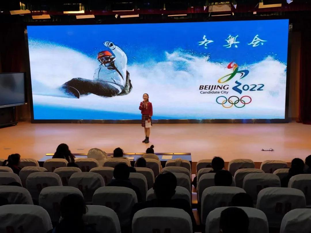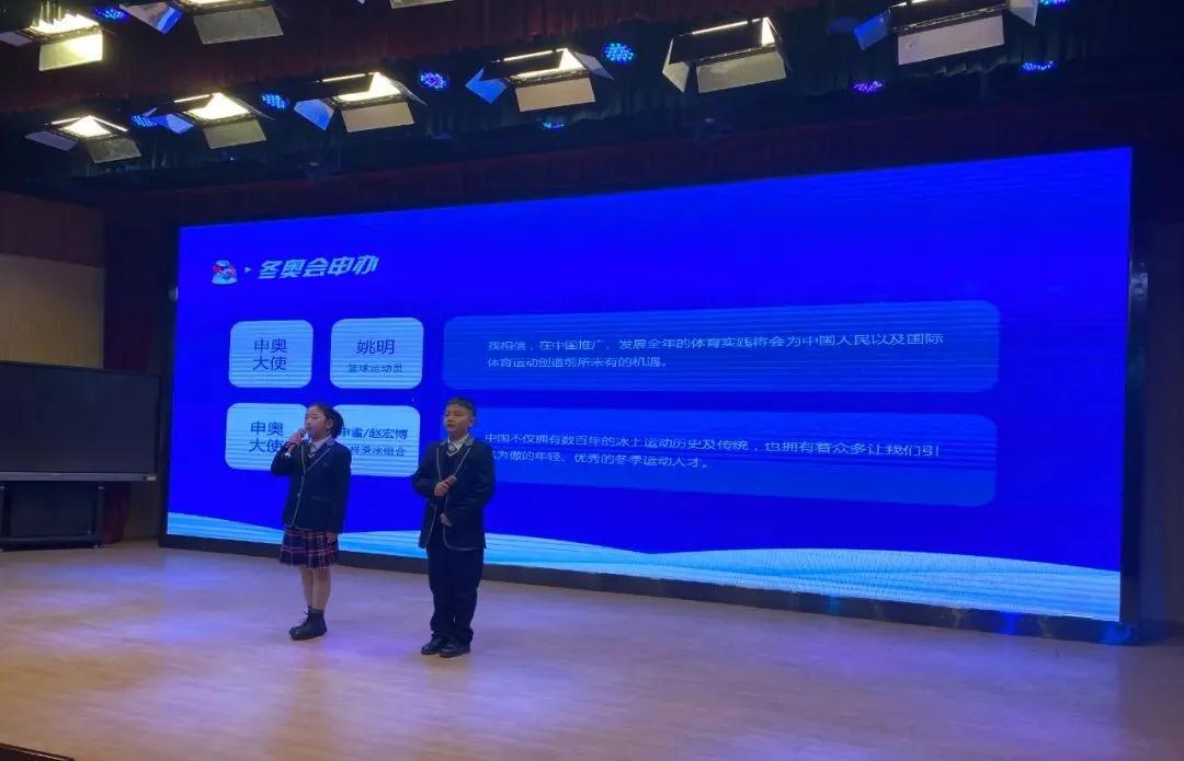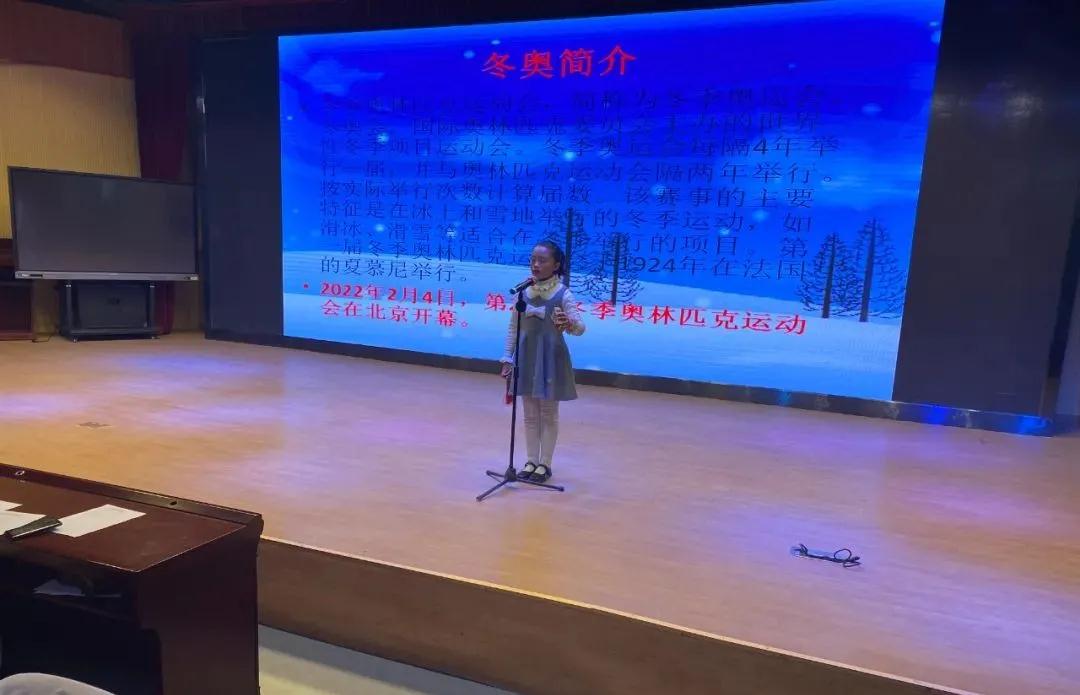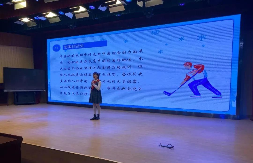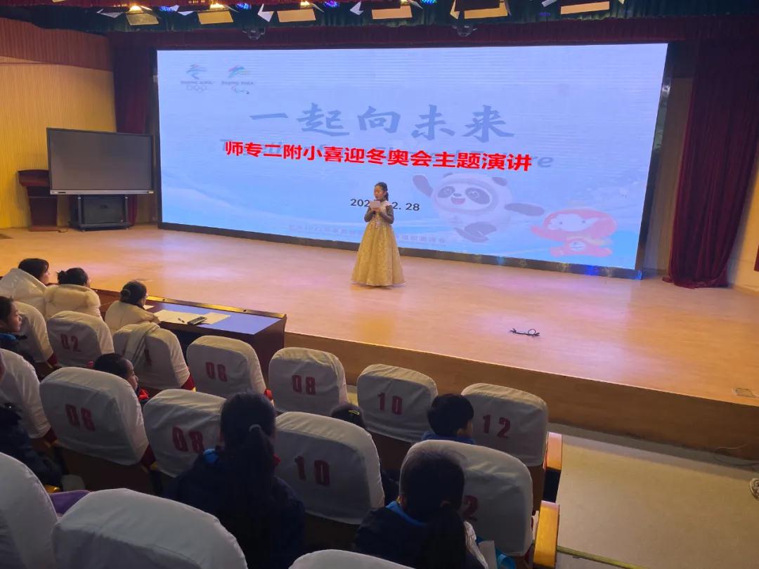 扬鞭丑牛去,舞动寅虎来。一年一度的新春佳节离我们越来越近,吉庆祥和的氛围笼罩在华夏儿女身边,与此同时,第24届冬季奥运会也即将在我国的北京和张家口隆重举行,北京也成为了奥运史上唯一举办冬季奥运会和夏季奥运会的城市。为丰富学生的业余生活,锻炼学生的各项能力,更好地落实“立德树人”“五育并举”的办学宗旨,12月28日中午,我校开展了“二附少年秀——喜迎冬奥会”主题演讲活动,来自三至六年级的十名学生用自己稚嫩的童声讲述对冬奥会的认识,表达对奥运健儿和祖国的祝福,四年级在校用餐学生观摩了本次活动。