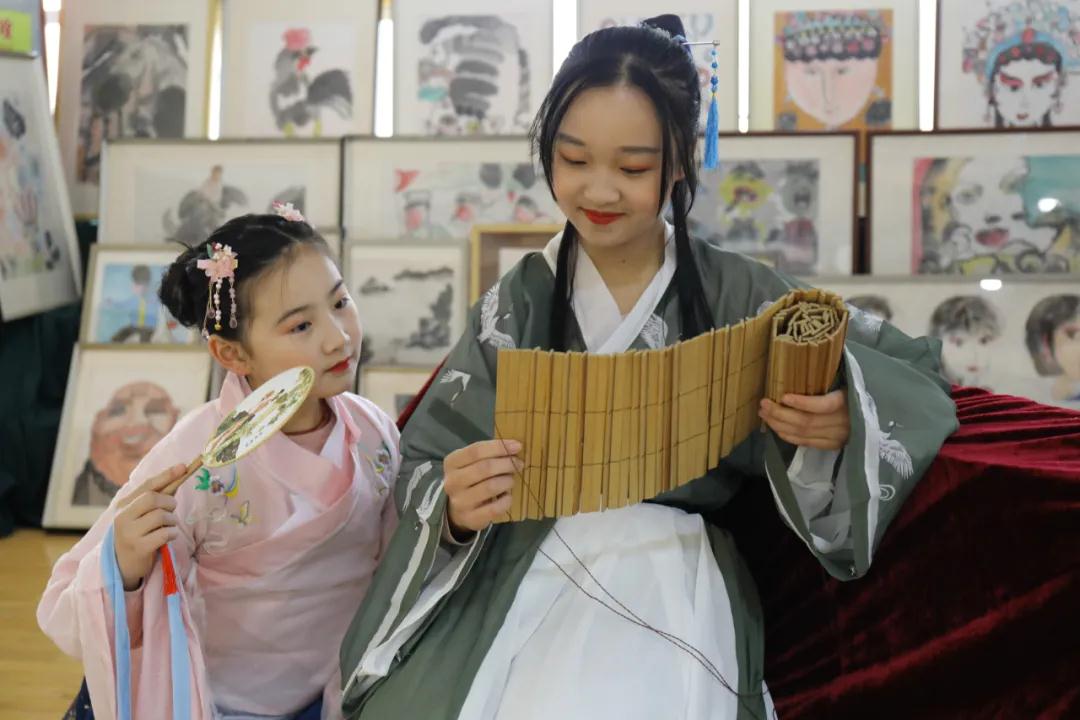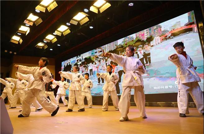 童心剧场内,由学校民乐团激情开场,紧接着体育类社团玩转花样年华,啦啦操、足球、排球、篮球、轮滑、跆拳道等一应俱全,让人目不暇接,展现了孩子们积极向上的拼搏精神。语言类社团表演形式多样,书法社团现场潇洒挥毫,与朗诵者共同书写二附更美好的明天;舞蹈类社团为大家带了视觉与听觉的双重盛宴,天真活泼的孔雀舞、古典优雅的中国舞、充满激情的街舞,让孩子们切身感受到了艺术的美;器乐合唱类社团以器乐为媒,急拨慢揉,带大家领略了丝弦管竹之悠远。