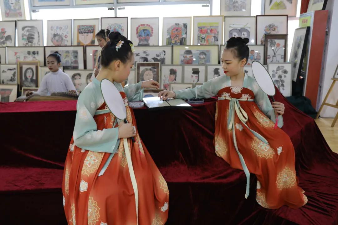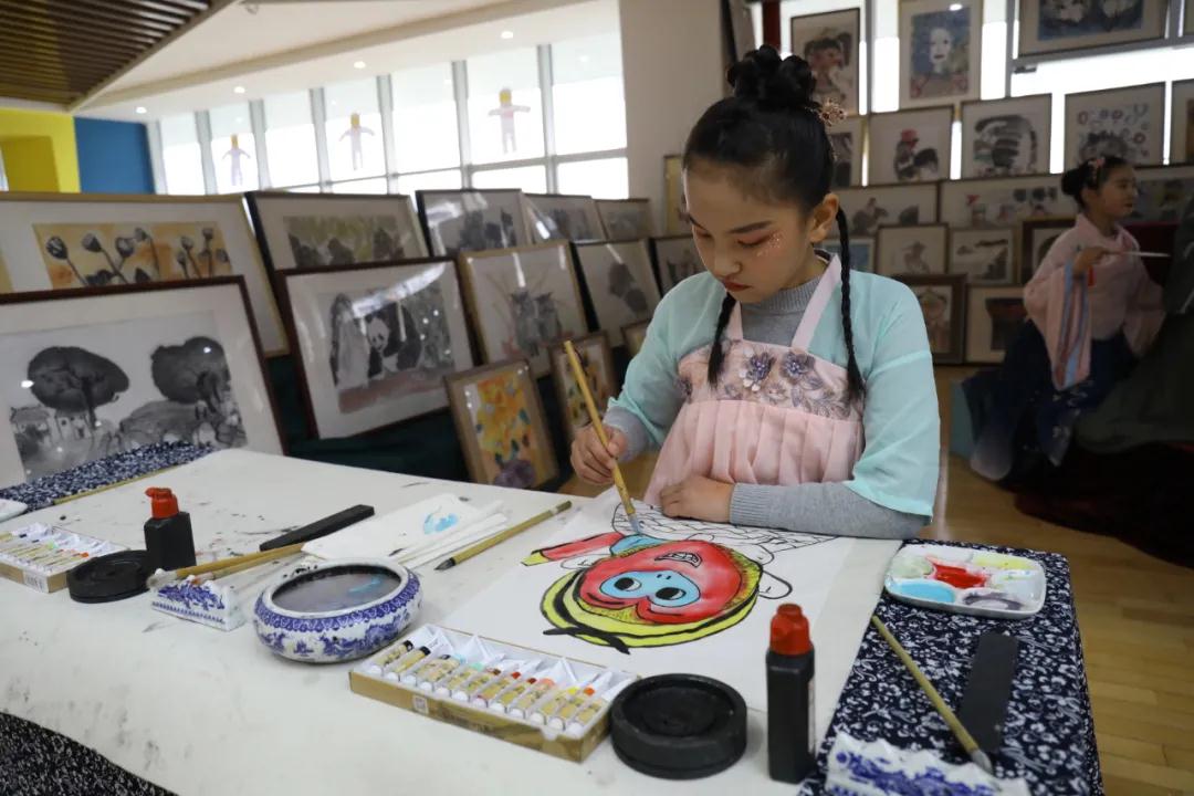体育馆共分布九个美术展区,分别是剪纸、线描、儿童画、创意美术、彩塑、立体手工、国画、写绘、写生等。栩栩如生的彩塑、剪纸让孩子们在动手动脑的过程中感受中华传统文化的魅力;各式各样的绘画作品更是匠心独运,展示了孩子们多姿多彩的内心世界。
