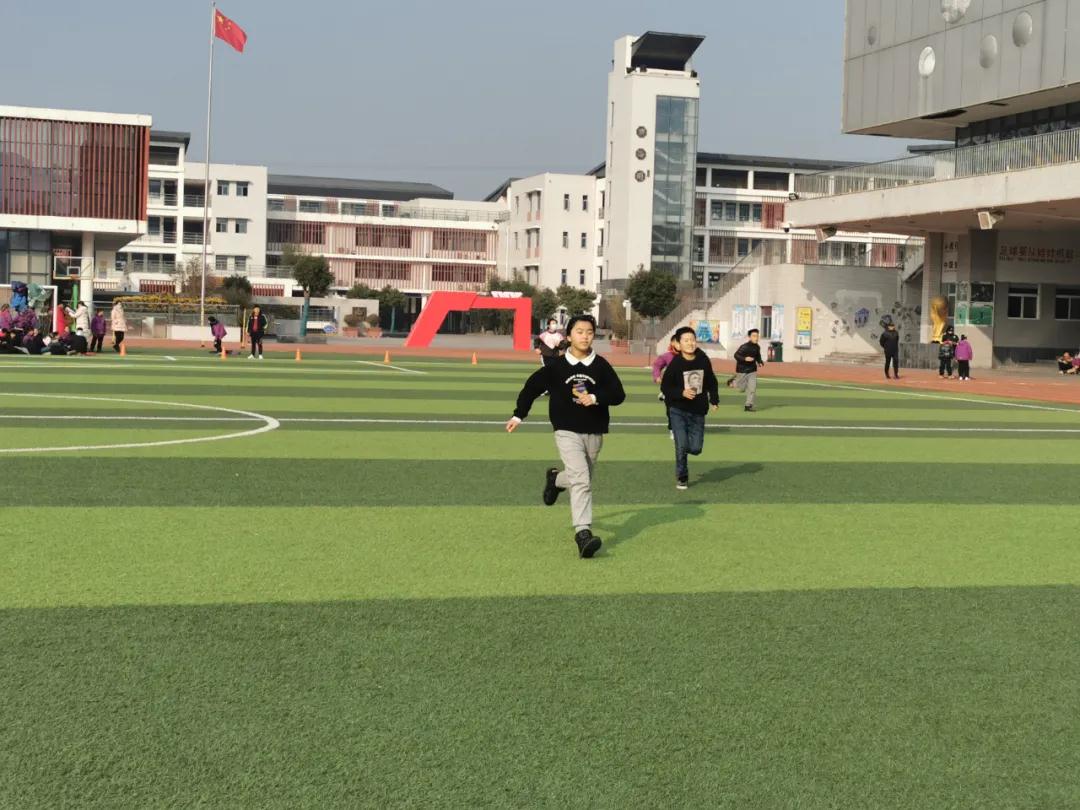 在体育技能考核现场,三至六年级学生分别进行了300米自然地形跑、跳远、垒球和50*8往返跑的活动。孩子们在老师的带领下做好热身运动,随后进行考核。三年级的孩子们一边钻过设置的障碍,一边在老师的鼓励下向终点跑去。在跳远现场,四年级孩子奋力奔跑为起跳助力,积极地摆臂与身体配合在空中腾起,最后轻巧平稳地落地。五年级孩子在垒球投掷现场掷臂一挥,一只只沙包在空中划过一道道优美的弧线。操场中间是进行往返跑的六年级孩子们,他们始终没有放弃奔向终点的心,在一次次的转身中见证他们坚韧的品格。