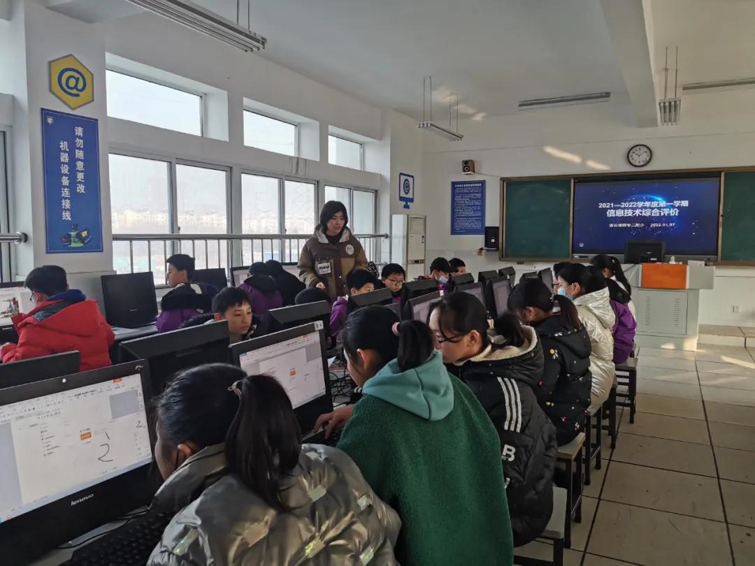 在信息技术教室,学生根据所给题目上机实践,或画图、或进行文本编辑、或对图片进行设置、或利用软件进行编程设计,能按规定完成指定的任务。