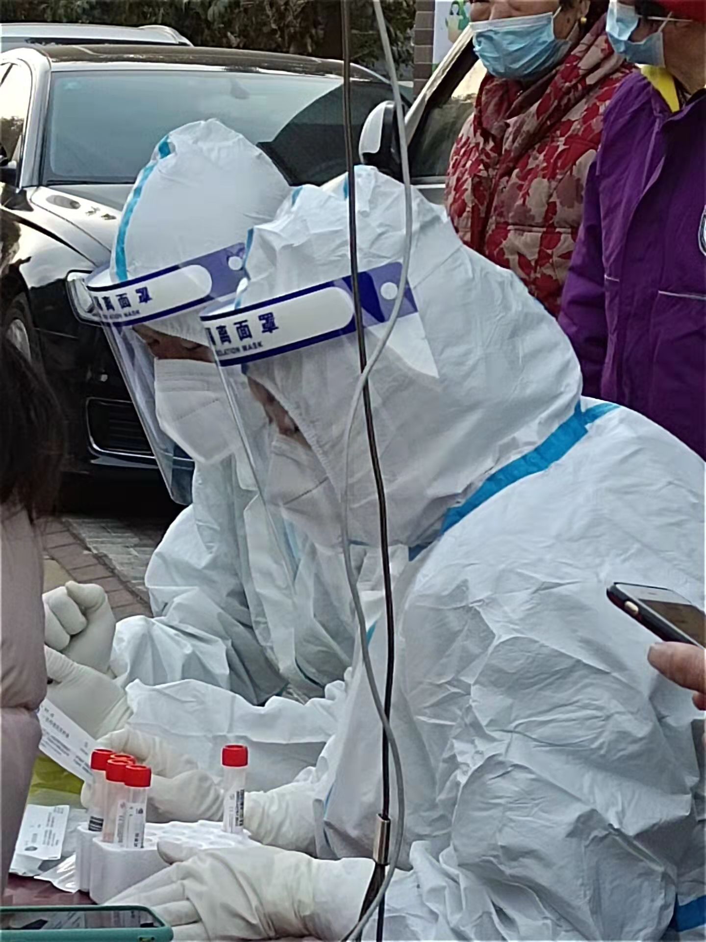 说实话,志愿者工作的第一天,当我穿上隔离服后,内心是些许紧张的,担心可能面临的病毒感染。期间,我主要负责社区居民核酸采样前的个人身份信息采集和体温检测工作。在持续几轮核酸检测后,有不少居民对我们的工作给予了肯定和赞扬,在他们的关心和支持下,一开始内心存在紧张感也早已消失不见,取而代之的是内心萌发的愉悦感和自豪感。