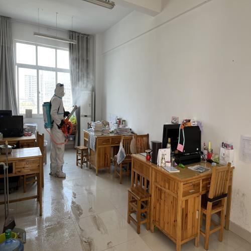 结合疫情防控的要求,学校防控小组通过排查校园重点区域,在全面消杀、重点防控等方面制定了消杀方案计划,并在现场和队员沟通,根据《江苏省学校及托幼机构新型冠状病毒感染的肺炎消毒技术指南(试行)》要求,重点对学校传达室、教室、办公场所、功能室、报告厅、体育馆、户外活动场所及各类设施等区域进行消杀和通风,对门把手、开关、楼梯扶手、水龙头等高频接触重点部位,通过喷洒等方法进行消杀,确保消毒彻底。