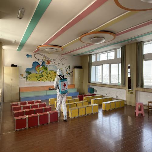 为做好复课复学的准备工作,保障师生的生命安全与身体健康,师专二附小邀请蓝天救援队的青年志愿者对学校进行了全面消毒防疫工作。此次消杀工作,为遏制疫情传播、筑牢校园安全防线提供了强有力的保障。