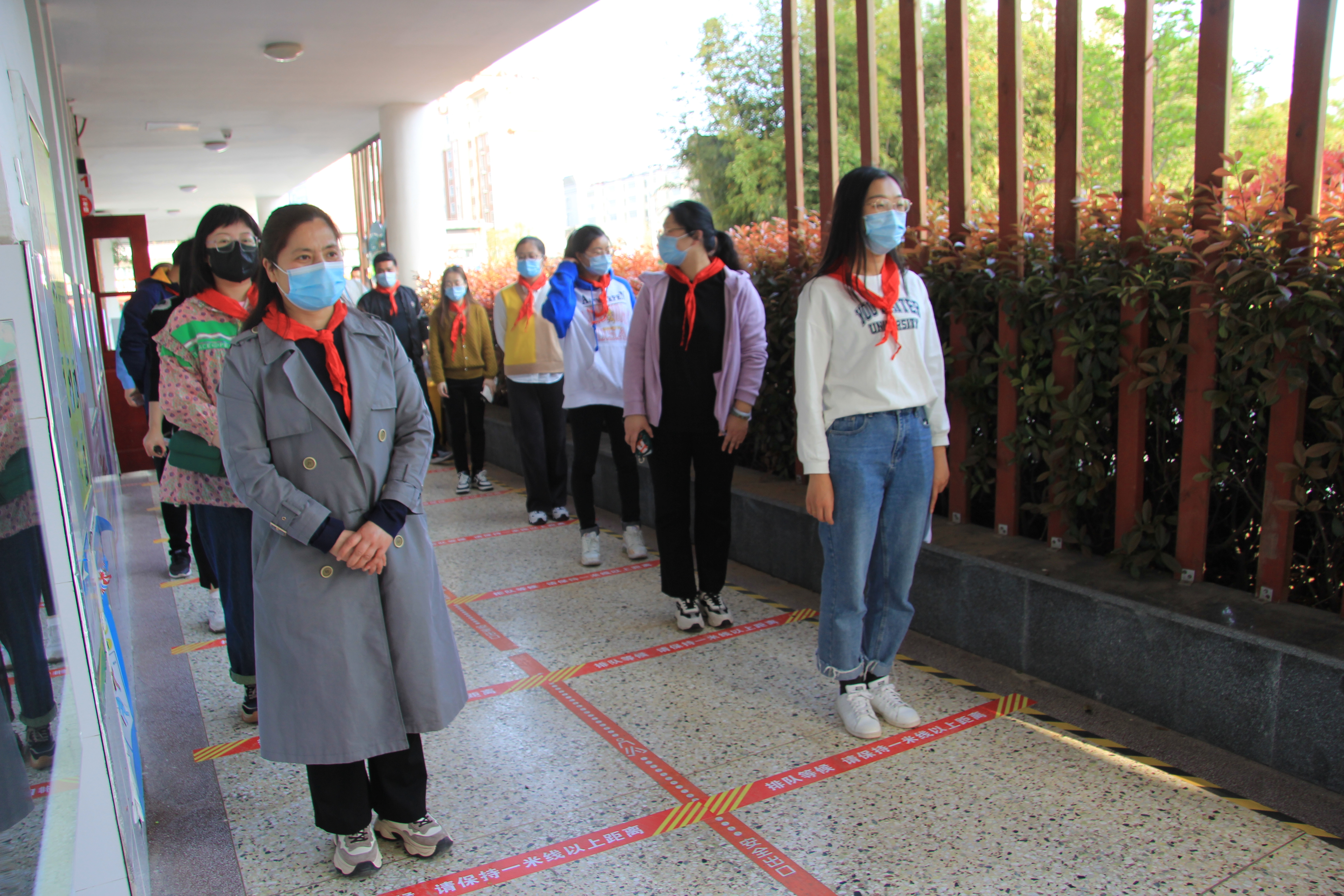 学校大门是校园疫情防控的第一道防线,把好校园第一道关卡至关重要。入校前学生需佩戴口罩,严格按照演练安排有序排队,排队时相互间保持1米远的距离,热成像测温仪发现体温异常学生,由体温复核员进行二次复核后送至学校隔离室,校医对疑似学生病例进行询问并在联系不上家长的情况下,由学校应急处置专用车辆送至西二院就诊治疗。