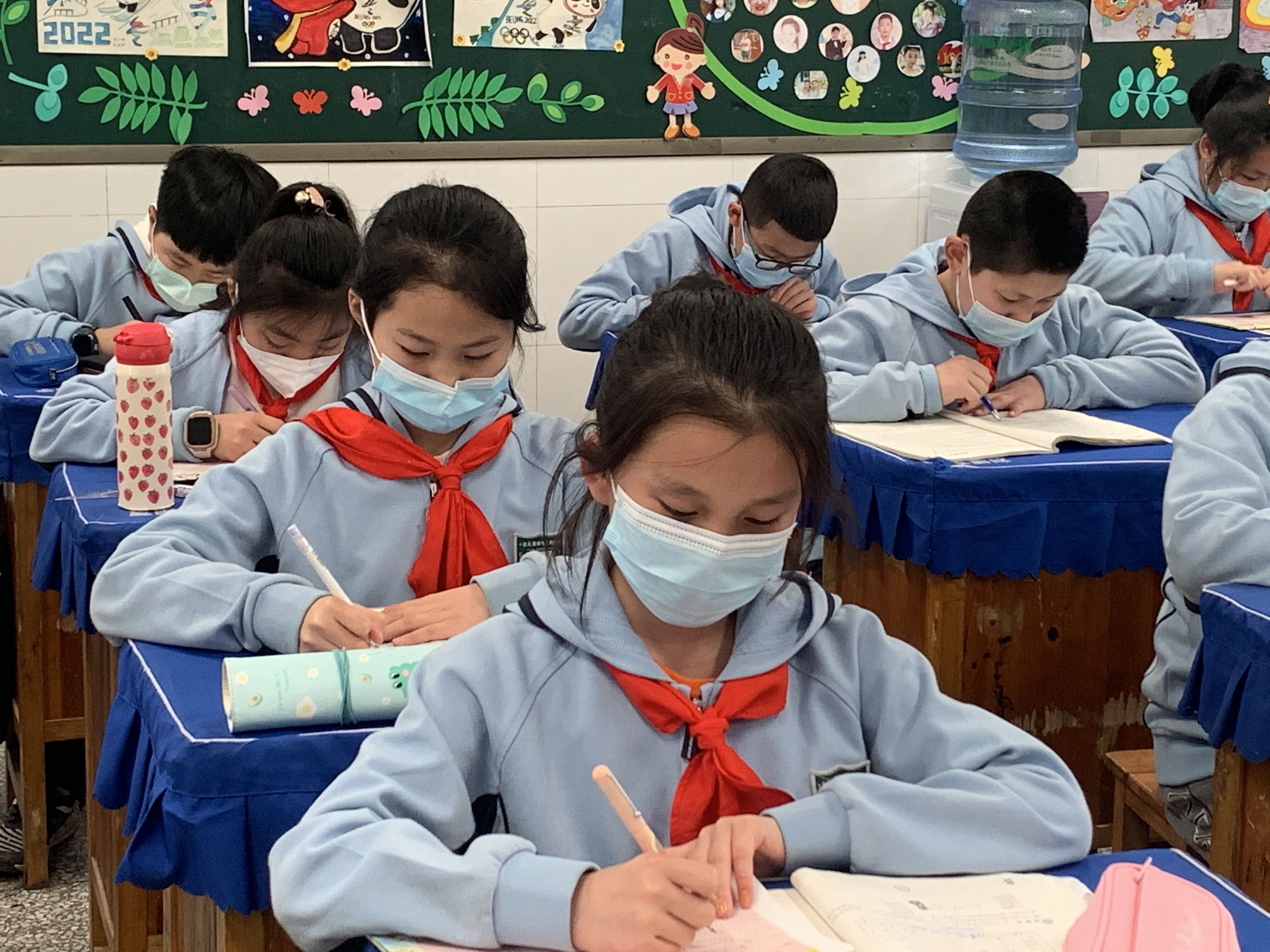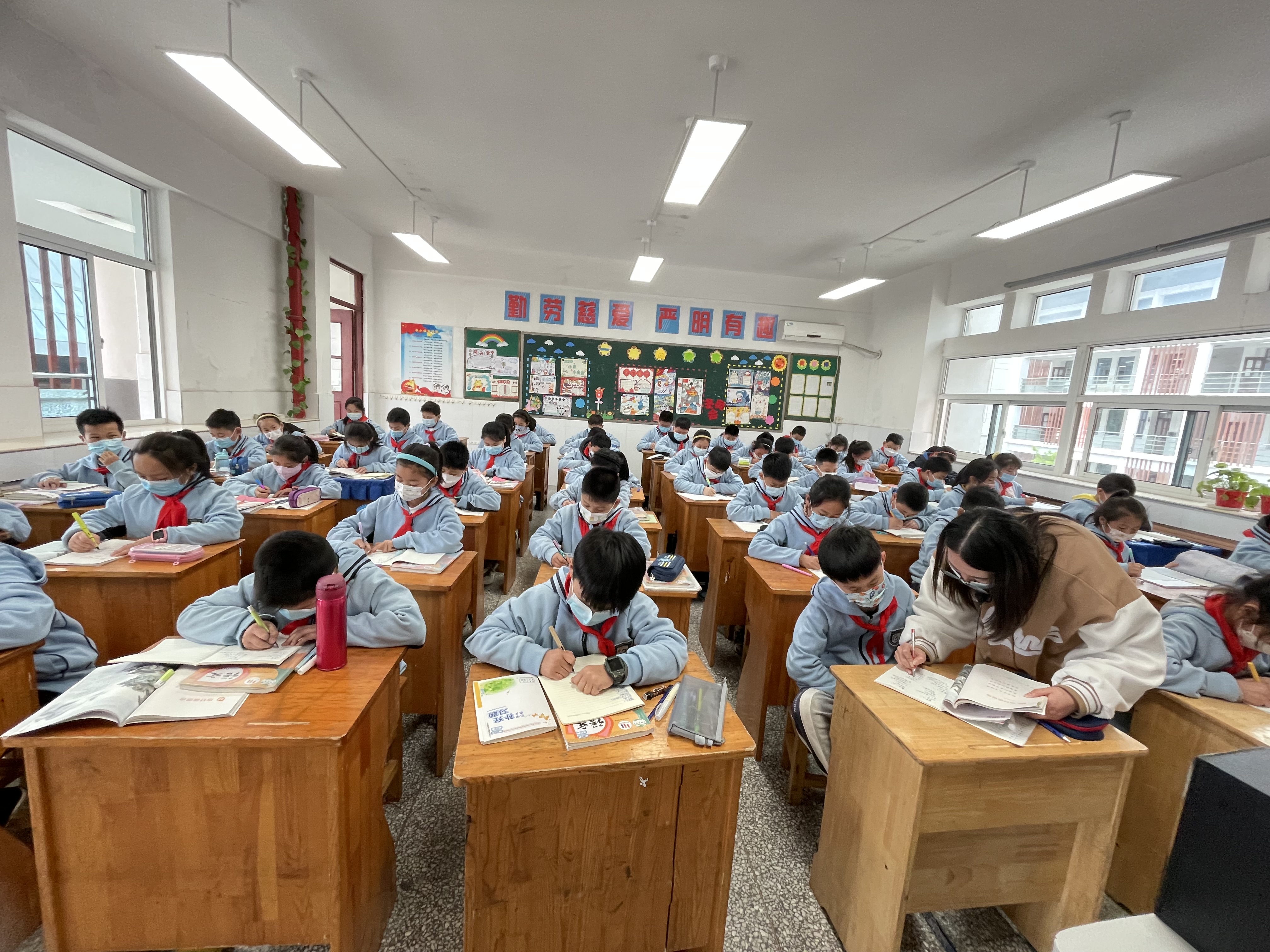 课后延时服务时,学生们在老师的指导下完成各科作业与练习,老师们及时帮助学生们答疑解惑,做好线上与线下学习的有效衔接。