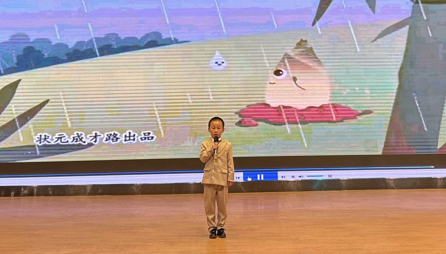 陆雨馨通过天马行空的想象让孩子们懂得了惜时如金、好好学习的道理;张靖琪则在讲述中将一群不畏艰难、锲而不舍追求梦想的小鲤鱼呈现在孩子们面前;王柏晴带来了春神姑娘的故事,她的讲述让孩子们仿佛看到了小草萌芽、遍地生花的美丽景象;而丁硕的《笋芽儿》声情并茂,让孩子们深刻感受到了笋芽儿坚持不懈的精神的力量。